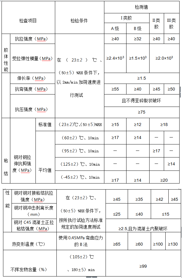 2.、甲組分為灰色粘稠狀膠體,乙組分為黑色粘稠狀膠體,混合后為灰黑色粘稠狀膠體混合物。